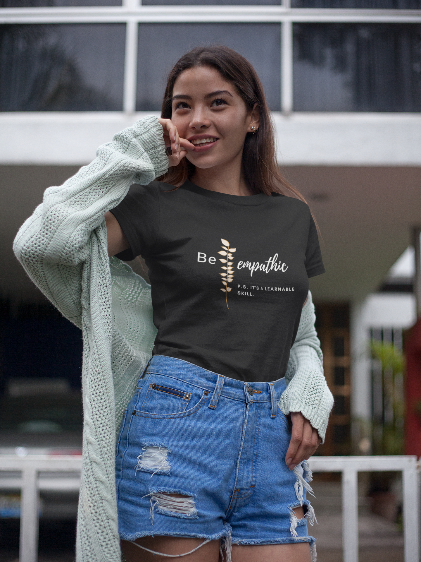 Embrace positivity and inspiration with our 'Be Empathic' T-Shirt, featuring a motivational quote that reminds us empathy is a skill we can all learn. This simple yet powerful design makes a thoughtful gift and a meaningful addition to your wardrobe. Made for comfortable everyday wear, this tee encourages both style and a positive mindset.