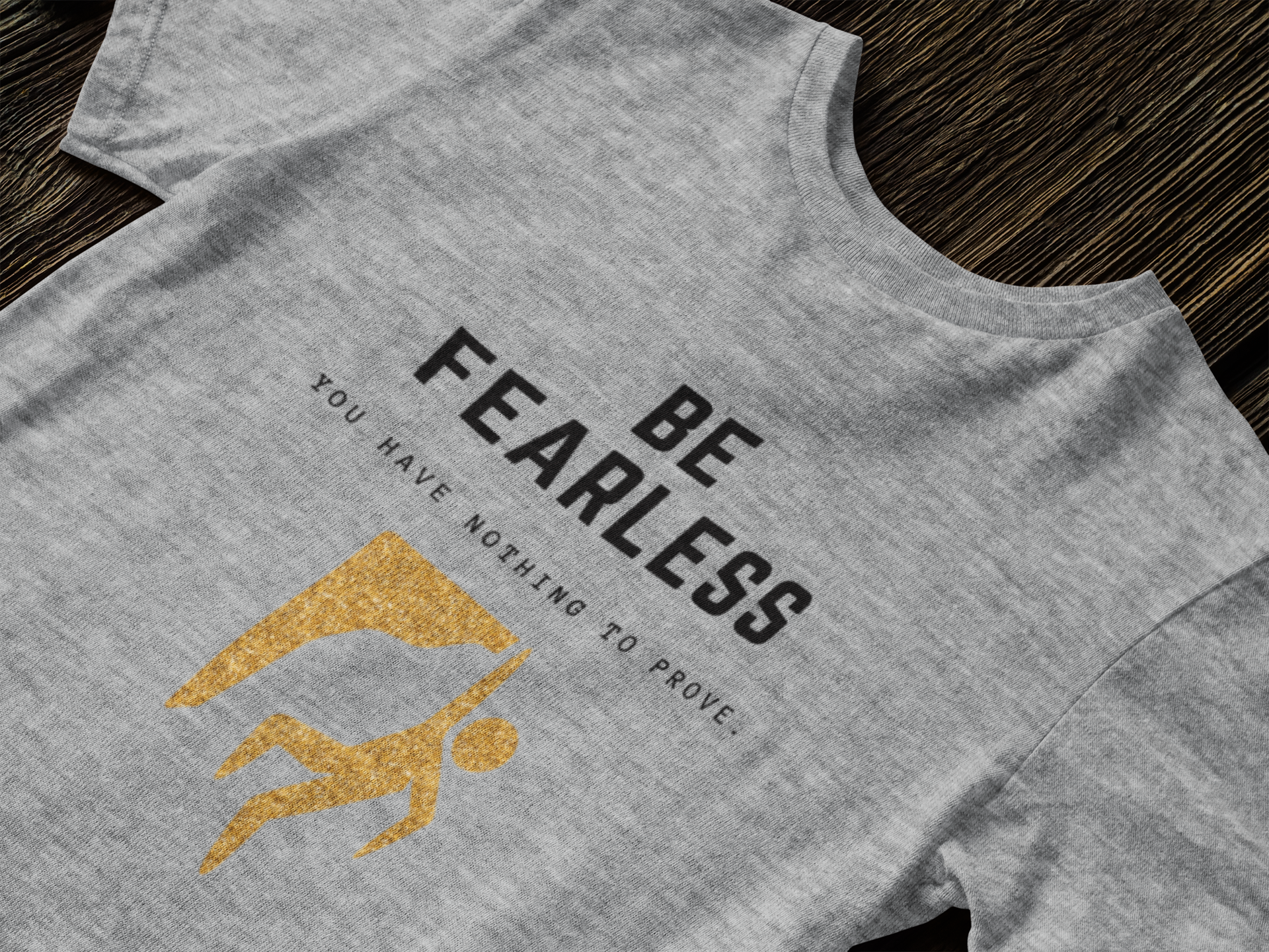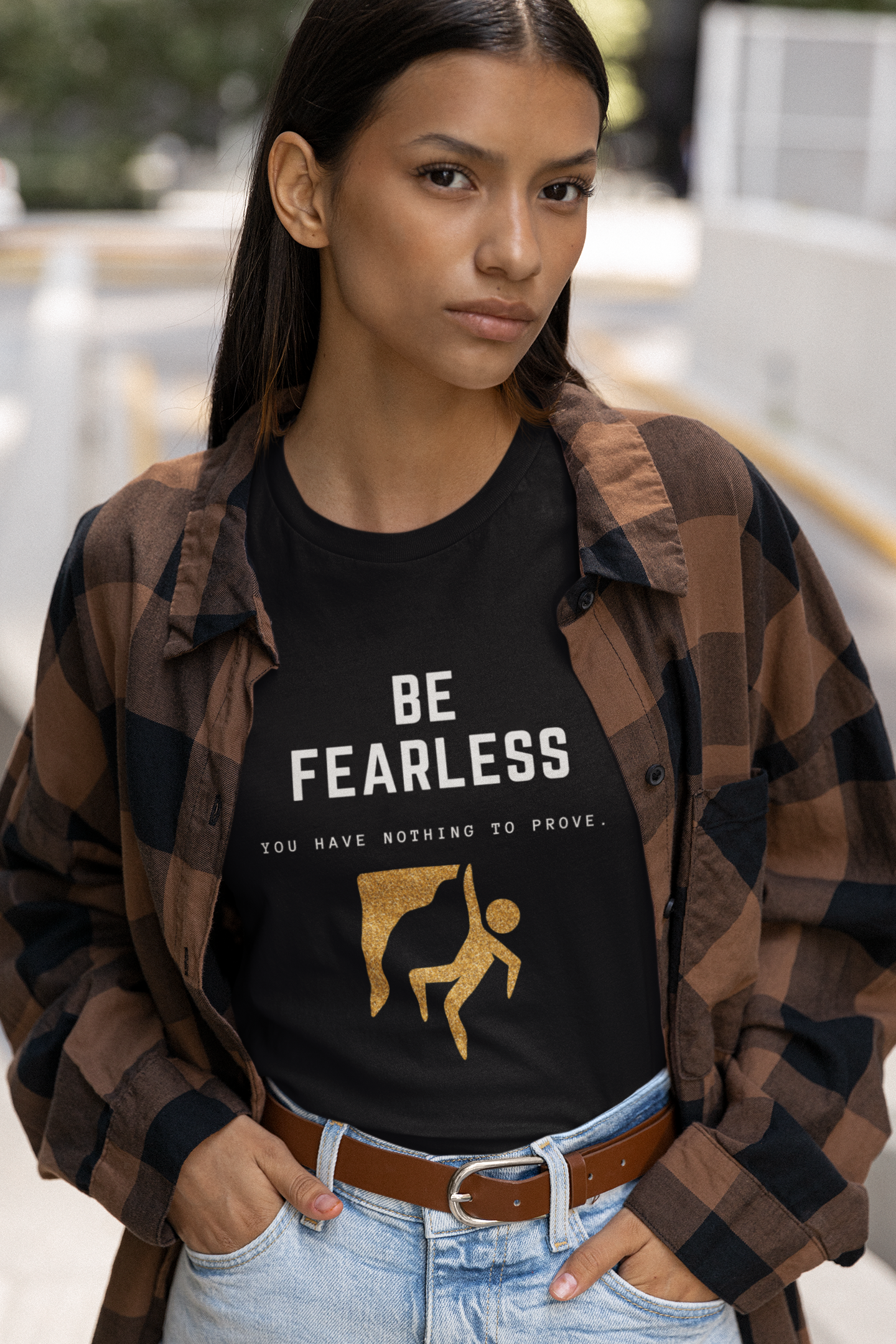 Add some sparkle to your wardrobe with this Be Fearless Gold Glitter T-Shirt—a perfect blend of style and inspiration. Made with comfortable materials, this unisex tee features a striking golden glitter design with the empowering message "Be Fearless You Have Nothing to Prove." Ideal for your next gym visit or casual outing, it encourages confidence and positivity. A unique gift for friends or a great way to treat yourself to a motivational boost!