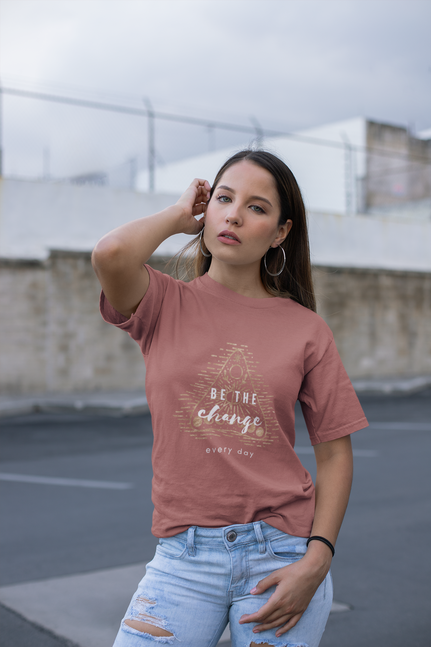 Step out in style with a message that speaks volumes. This 'Be The Change Every Day' T-shirt features an eye-catching gold glitter design, radiating positivity everywhere you go. Designed for comfort and impact, this unisex tee makes a thoughtful gift or a personal statement piece. Whether you're heading to a casual event or just lounging at home, let your clothing reflect your inner light and inspire others to make a difference with this unique top.