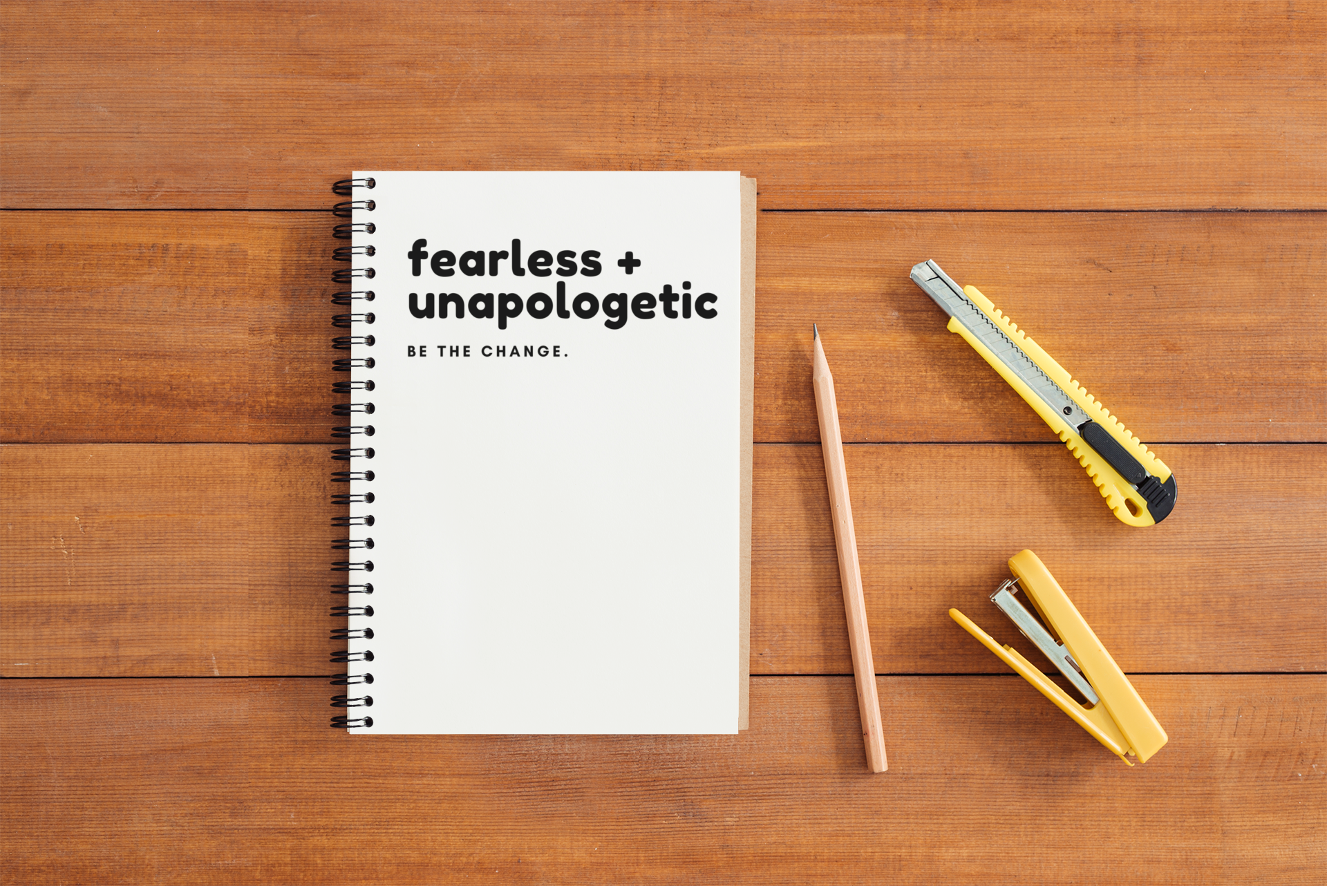 Carry your thoughts, to-do lists, and dreams in this empowering spiral notebook featuring the inspiring quote "Fearless + Unapologetic. Be the change." Ideal for journaling, note-taking, or jotting down daily inspirations, this sturdy notebook is a perfect companion for those who want a motivational touch in their daily lives. With its crisp white cover and bold, simple text, it is designed for both functionality and style. The spiral binding allows you to lay the notebook flat, making it easier to write in, and the paper quality ensures that your pen will glide smoothly across the page.