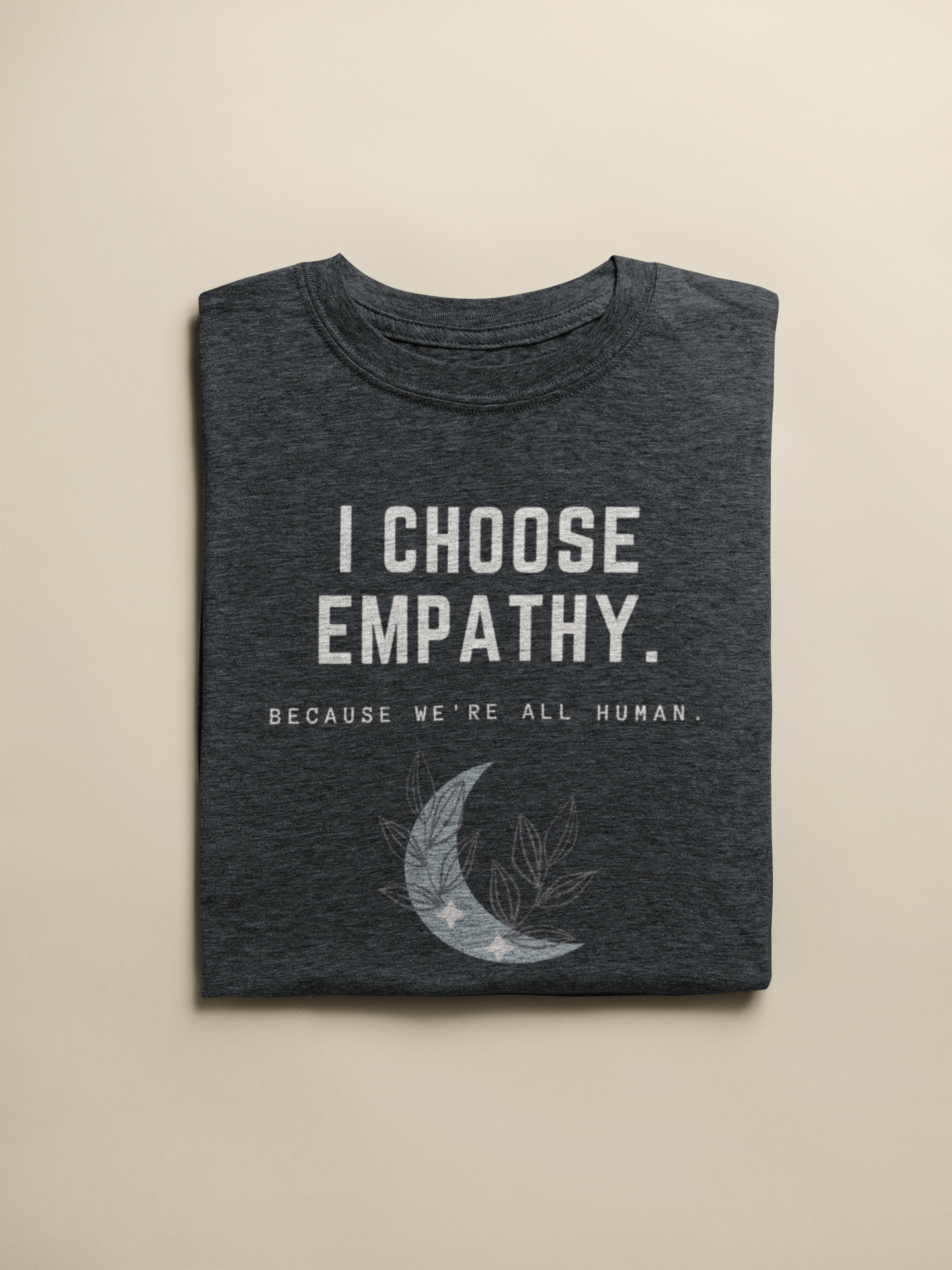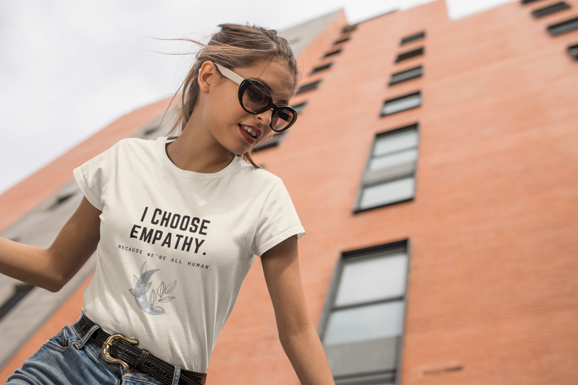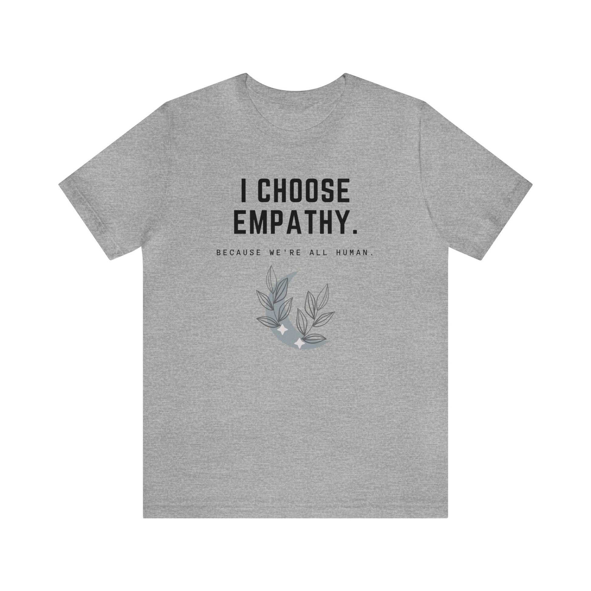 Embrace positivity and human connection with our "I Choose Empathy" T-Shirt. This inspirational tee features a powerful message reminding us of the importance of empathy in our daily lives. The stylish design, centered around a harmonious blend of typography and leaf imagery, promotes kindness and understanding among all. Perfect for everyday wear, the shirt is crafted from soft, high-quality materials ensuring comfort and durability. Whether you're out with friends or making a statement at a social event, this shirt is bound to spark meaningful conversations and inspire others.