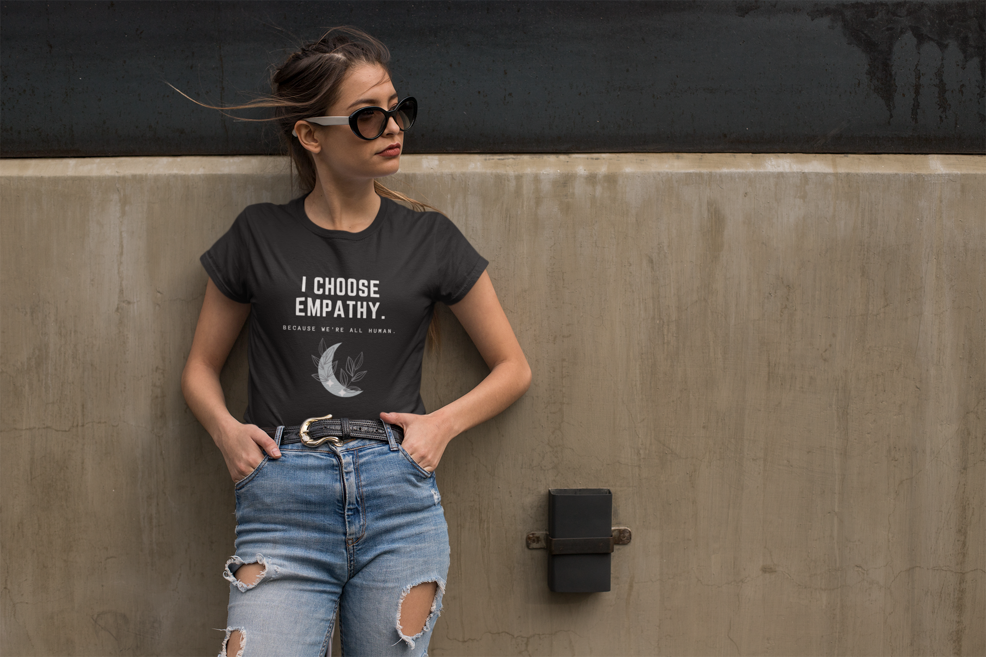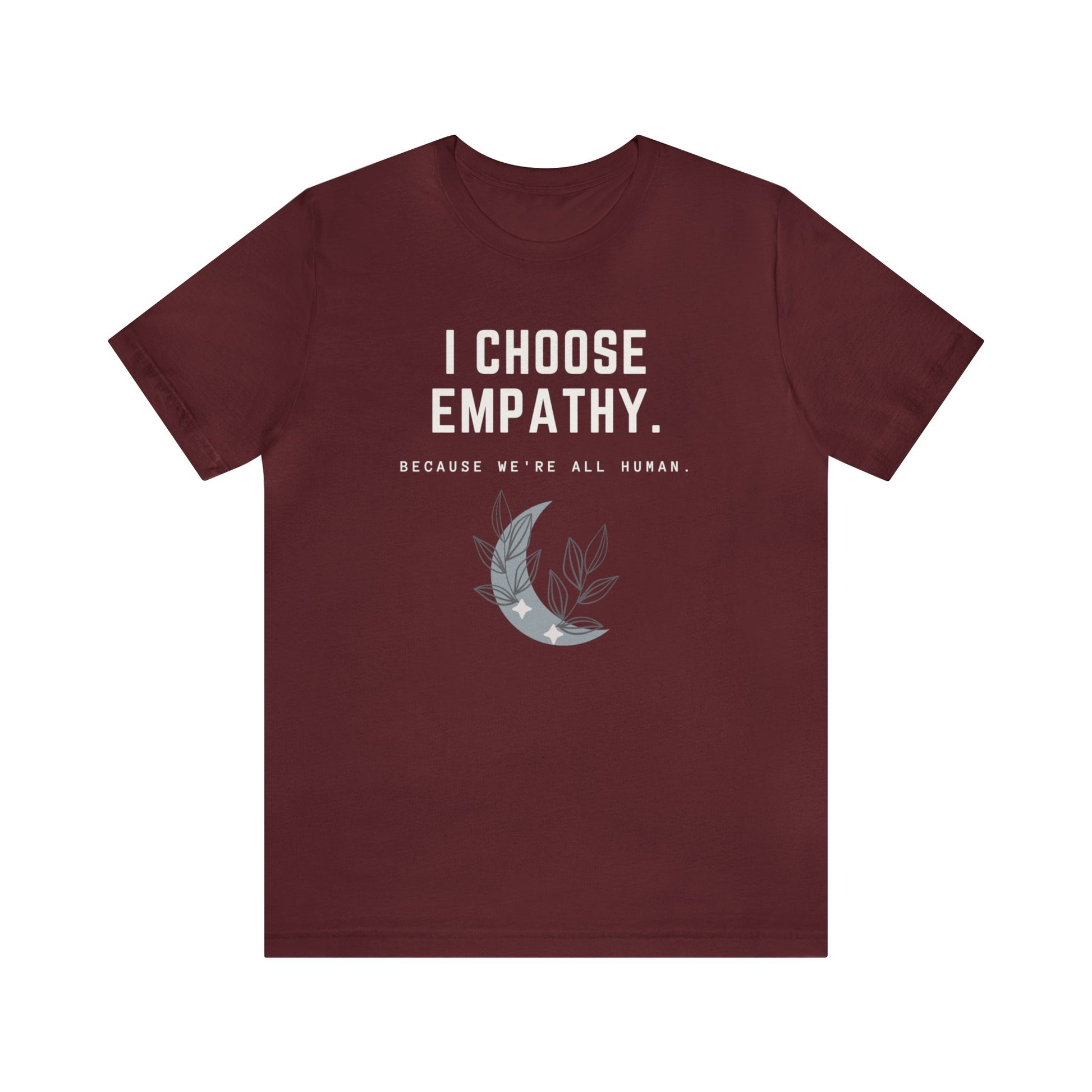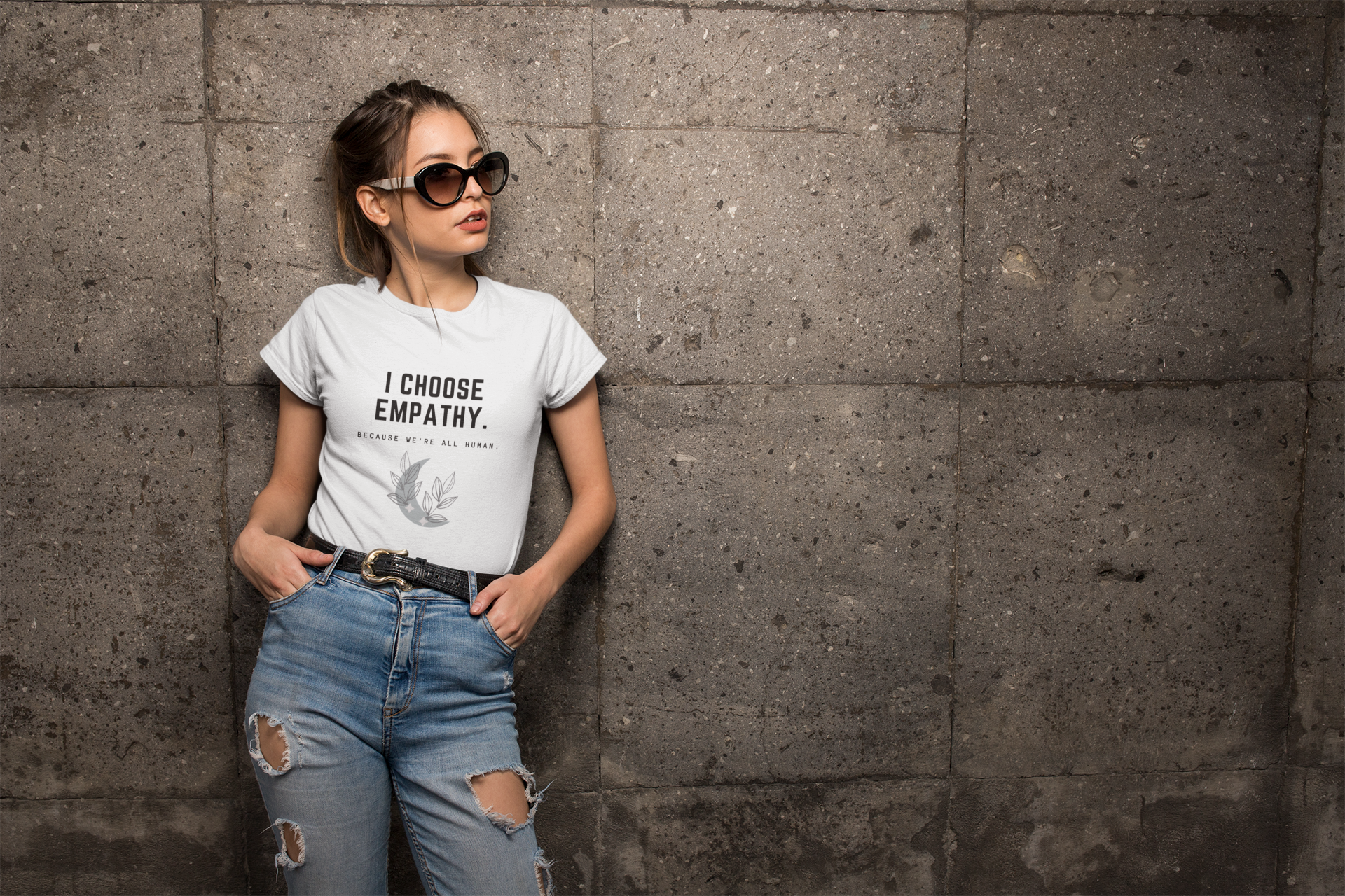 Embrace positivity and human connection with our "I Choose Empathy" T-Shirt. This inspirational tee features a powerful message reminding us of the importance of empathy in our daily lives. The stylish design, centered around a harmonious blend of typography and leaf imagery, promotes kindness and understanding among all. Perfect for everyday wear, the shirt is crafted from soft, high-quality materials ensuring comfort and durability. Whether you're out with friends or making a statement at a social event, this shirt is bound to spark meaningful conversations and inspire others.