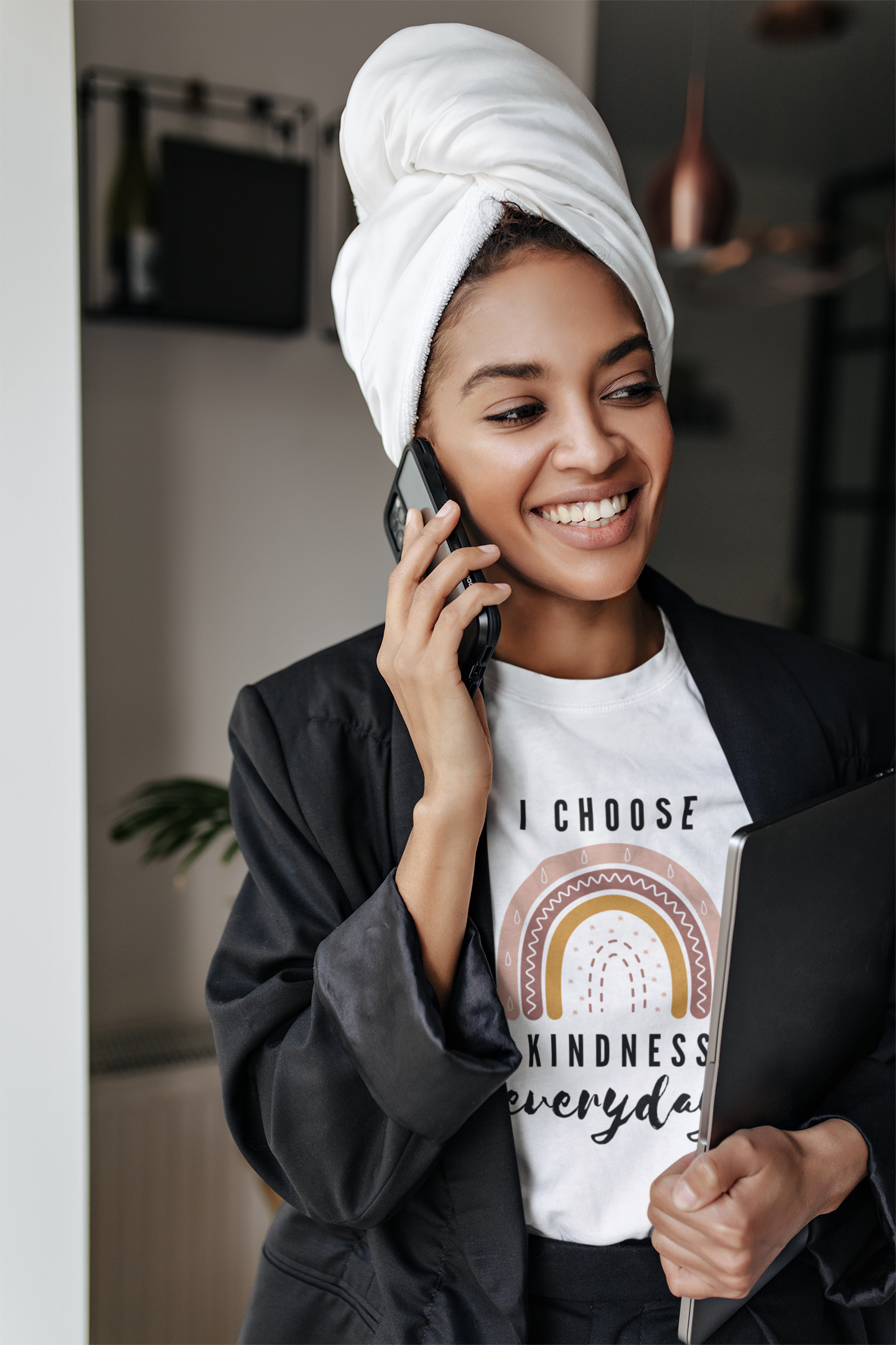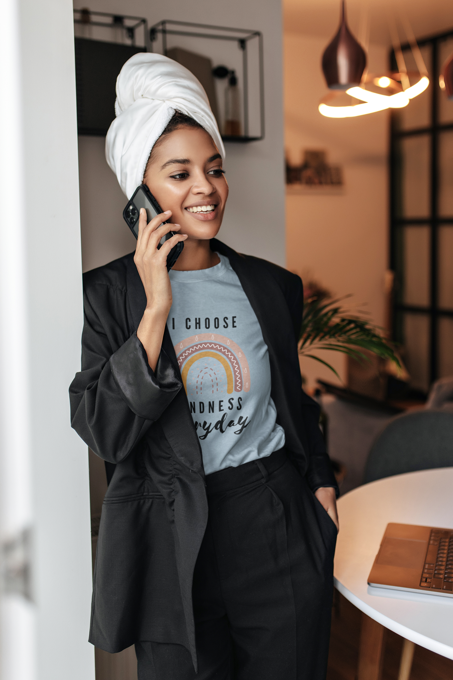 Embrace positivity with this uplifting 'I Choose Kindness Everyday' rainbow graphic tee. Made for comfort and style, this cotton t-shirt is perfect for anyone looking to spread a positive message. The cheerful rainbow graphic, coupled with the inspirational quote, makes it an ideal gift or a staple for your own wardrobe. Whether you're heading out for a casual day or simply lounging at home, this shirt's breathable material and heartwarming design will keep you feeling good and looking great.