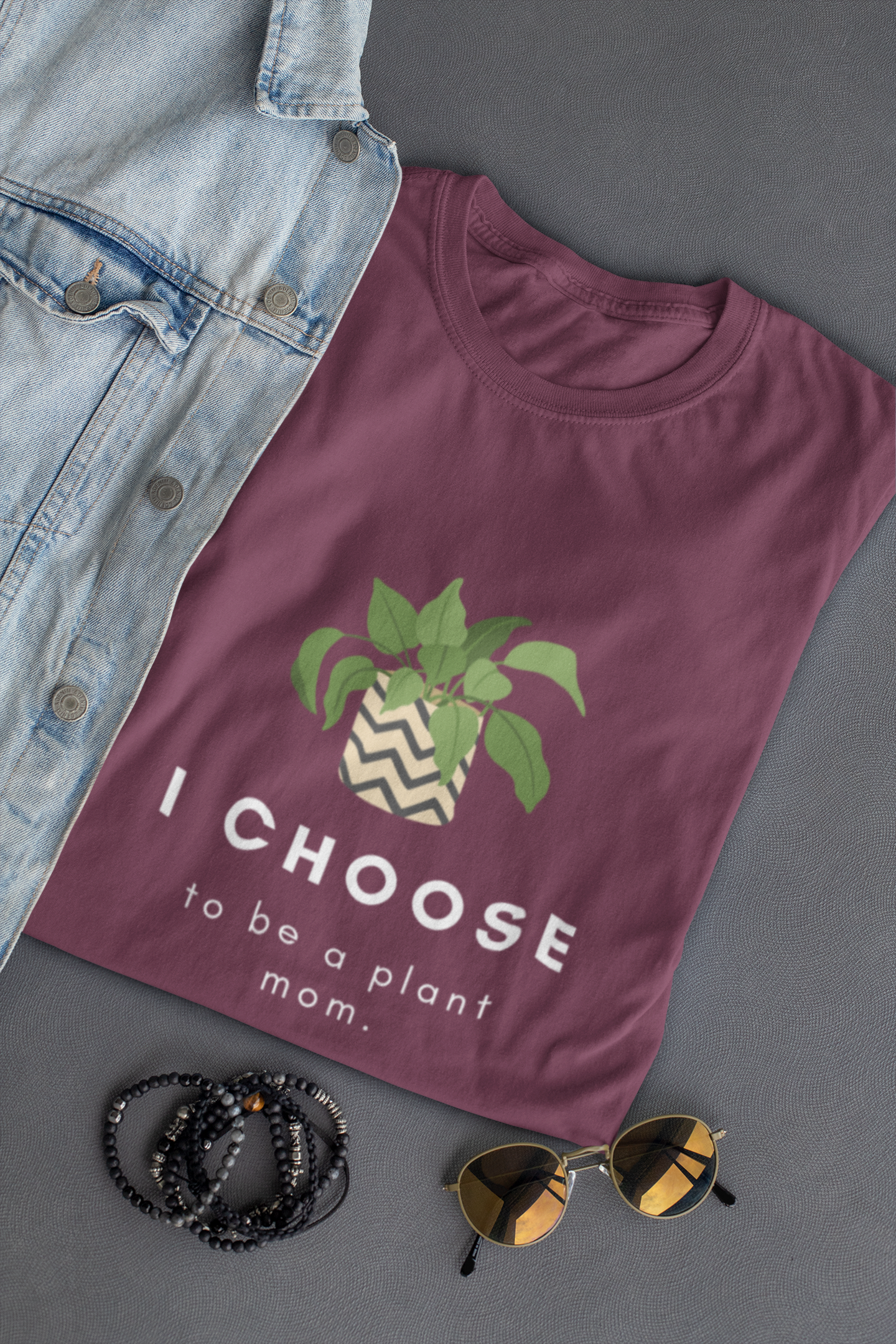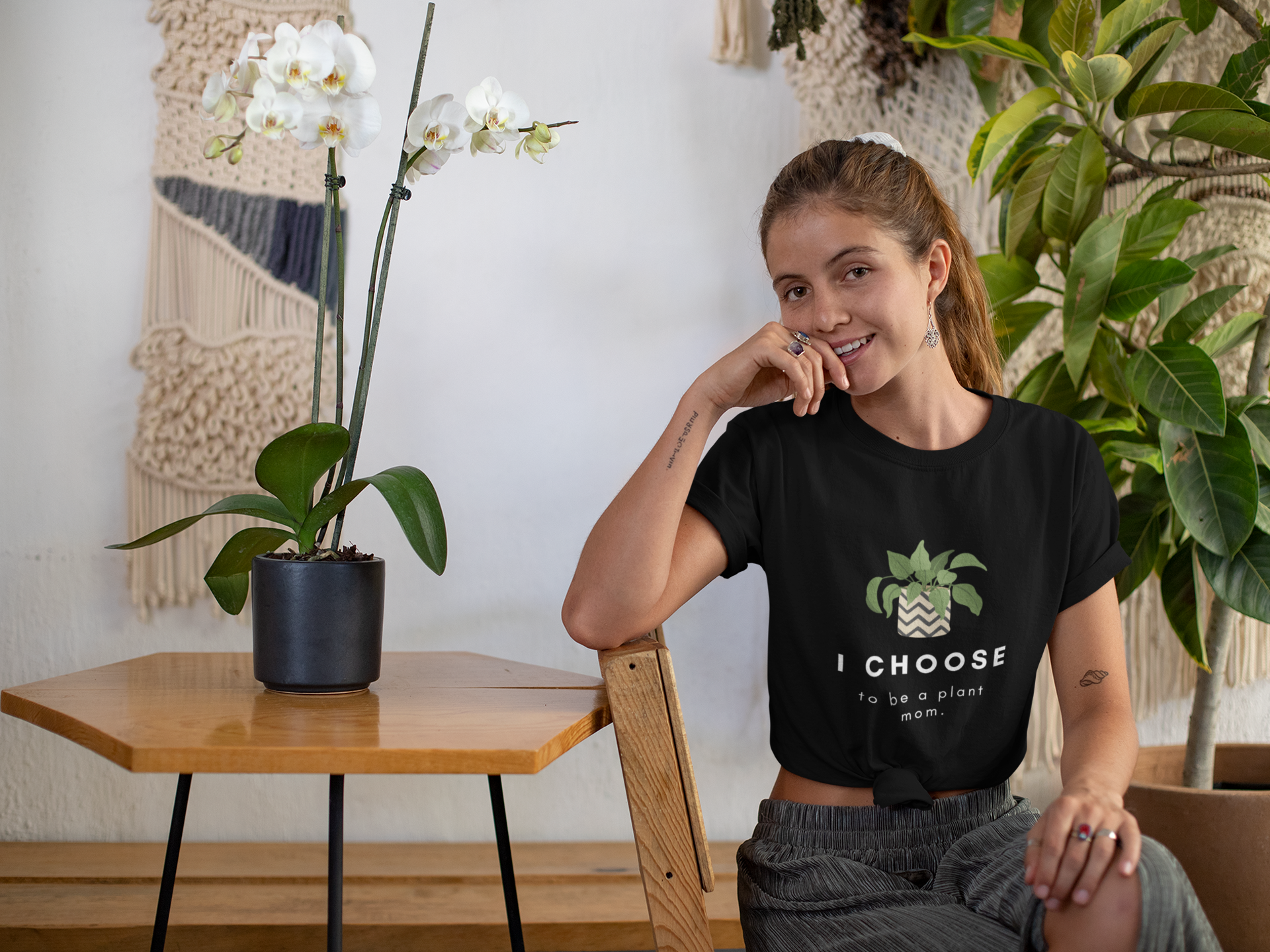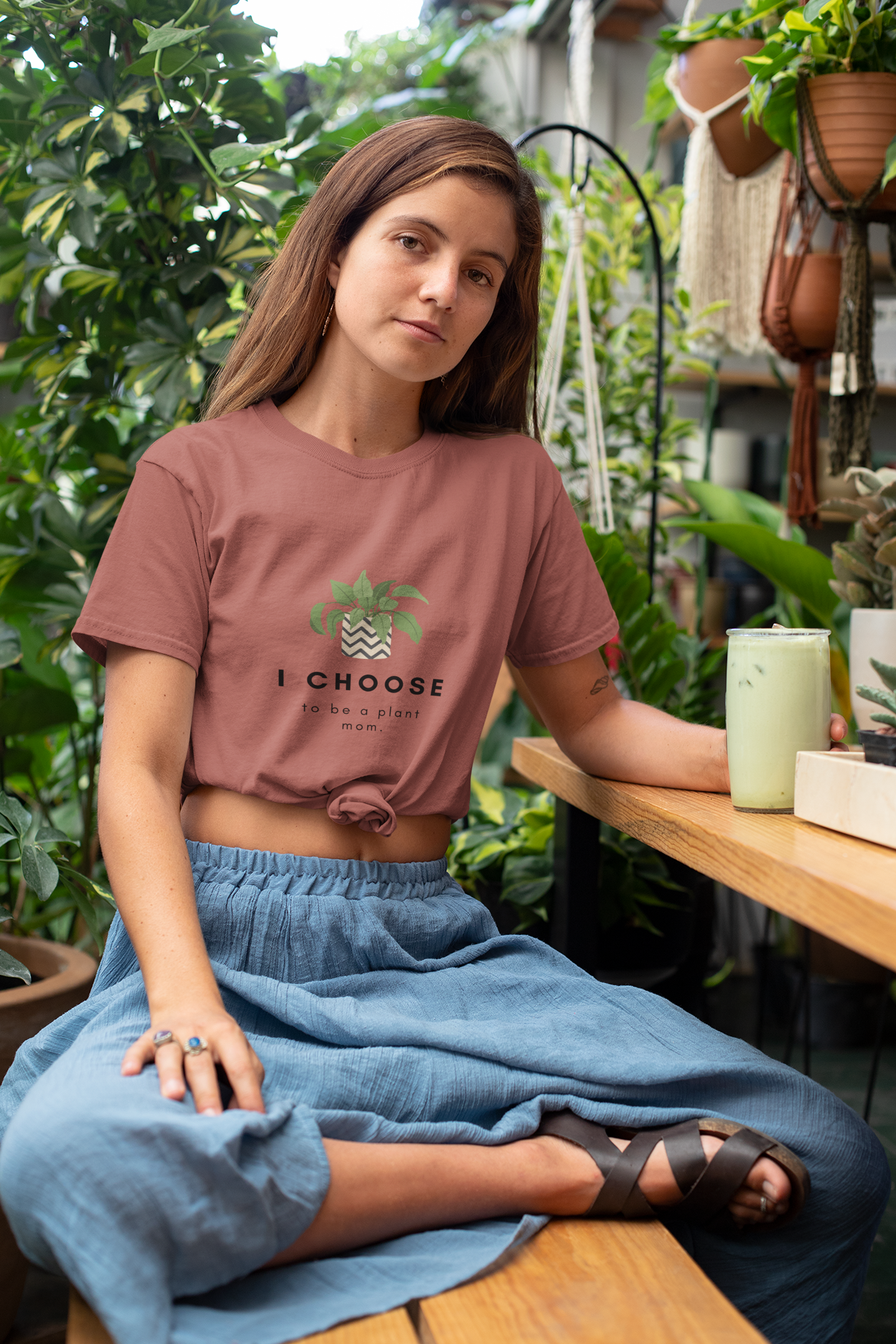 Plant Mom T-Shirt, Graphic Tee for Plant Lovers, Cute Botanical Shirt, Women's Casual Gardening Top, I Choose to be a Plant Mom Tee