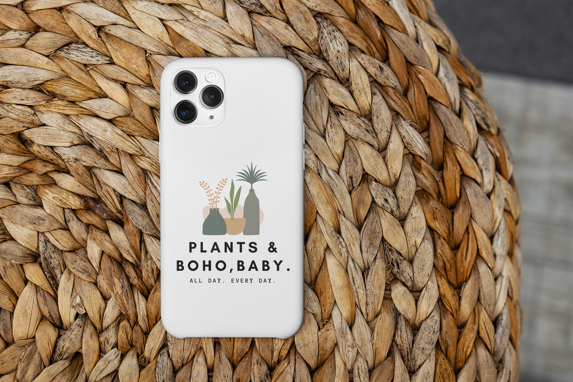 Embrace the boho spirit with this stylish phone case designed for plant lovers and urban jungle enthusiasts! This durable cover protects your iPhone while showcasing a chic, green-thumb vibe with a cute "PLANTS & BOHO, BABY" slogan. A perfect accessory for your daily adventures, it brings a touch of nature and trendy aesthetics to your tech. Not just a pretty case, it's designed to withstand the bumps and knocks of everyday life, keeping your phone secure in an eye-catching way.