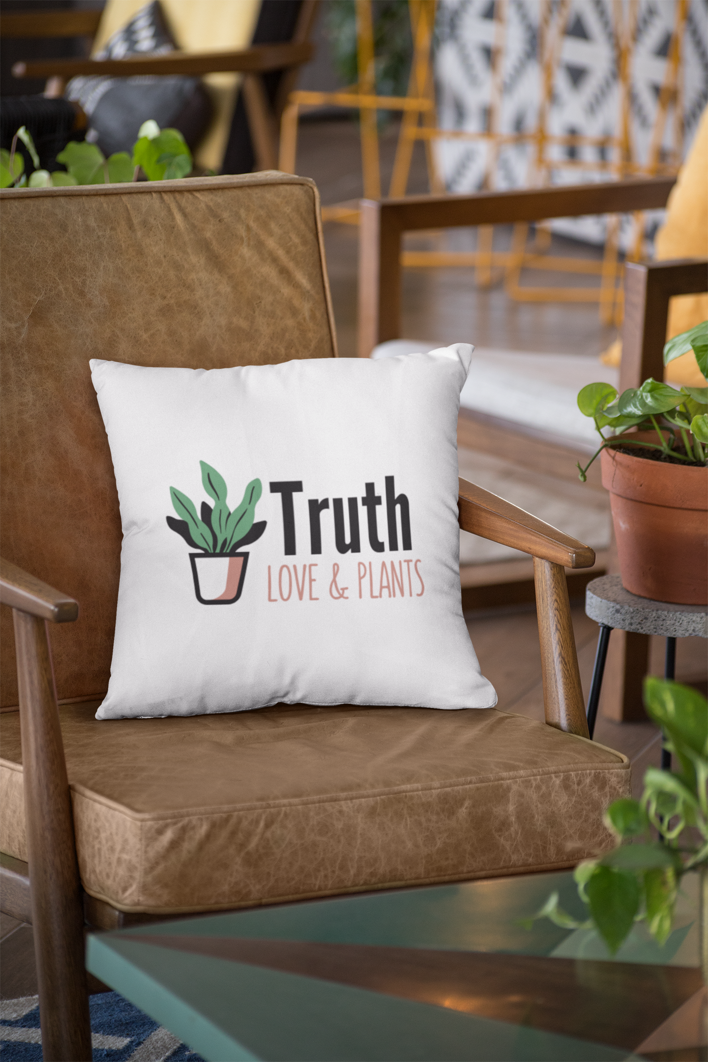 Inspirational Quote Pillow, Truth Love & Plants, Modern Home Decor, Boho Living Room Accent, Green Thumb Gift